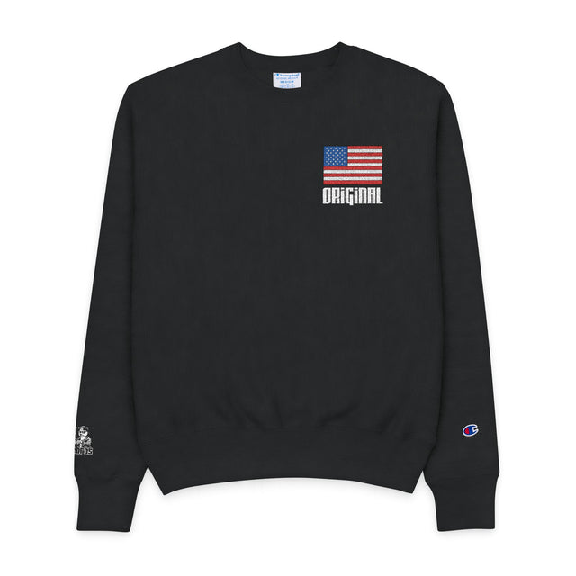 DOGEBROS "ORIGINAL USA" American Flag Champion Crewneck Sweatshirt, Casual Wear, Gift for him, Patriotic Apparel, Cozy Sweatshirt, Fourth of July - S / Black is backordered and will ship as soon as it is back in stock.